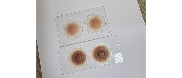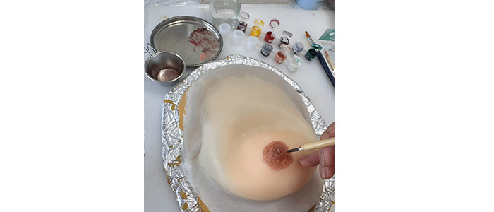 数年前からピンクリボンアドバイザーとなり色々学んでいくと、日本での乳房再建率が12.5%(2024年度)と大変低いことに驚きました。お胸を無くされた患者さまの選択肢が増えるようにとエピテーゼ(人工乳房)を学び製作もスタートさせております。